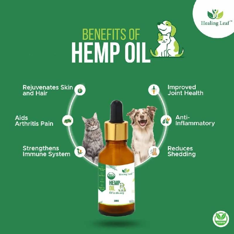 MAINTAINS HEALTHY FUR & SKIN ALLERGIES : Healing Leaf Hemp Seed Oil can help to soothe and moisturize the skin, which can help to reduce itching and inflammation. The oil can also help to improve the condition of your pet's fur, making it softer and shinier.