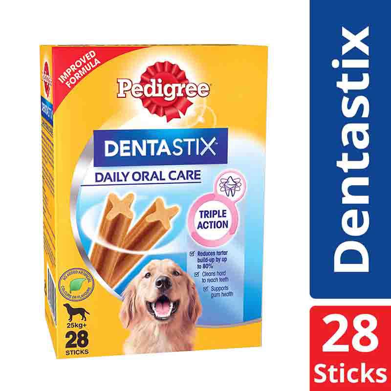 Dentastix is an effective daily dental care dog treat for your pet dog that is scientifically proven to help reduce tartar build-up in your dog’s teeth by up to 80%. Helpful in keeping your dog's teeth and gums strong and healthy, just one stick of Dentastix a day is enough to keep your dog's mouth clean.
