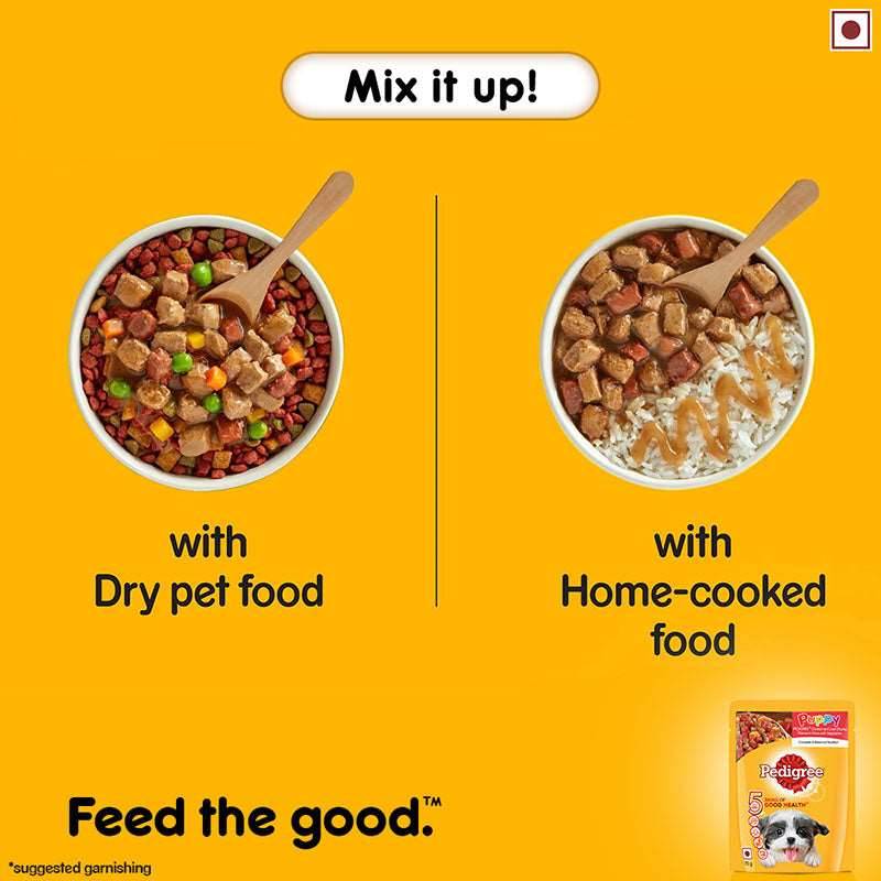 Containing a higher moisture content, Pedigree gravy food pouches are especially required for the hot season as they help keep your pup hydrated and therefore, energetic. It can be mixed with any meal - dry Pedigree food or home cooked food - to enhance taste and improve moisture-content. The tempting aroma and flavour of Pedigree gravy food is also effective in attracting fussy eaters into eating their meal.